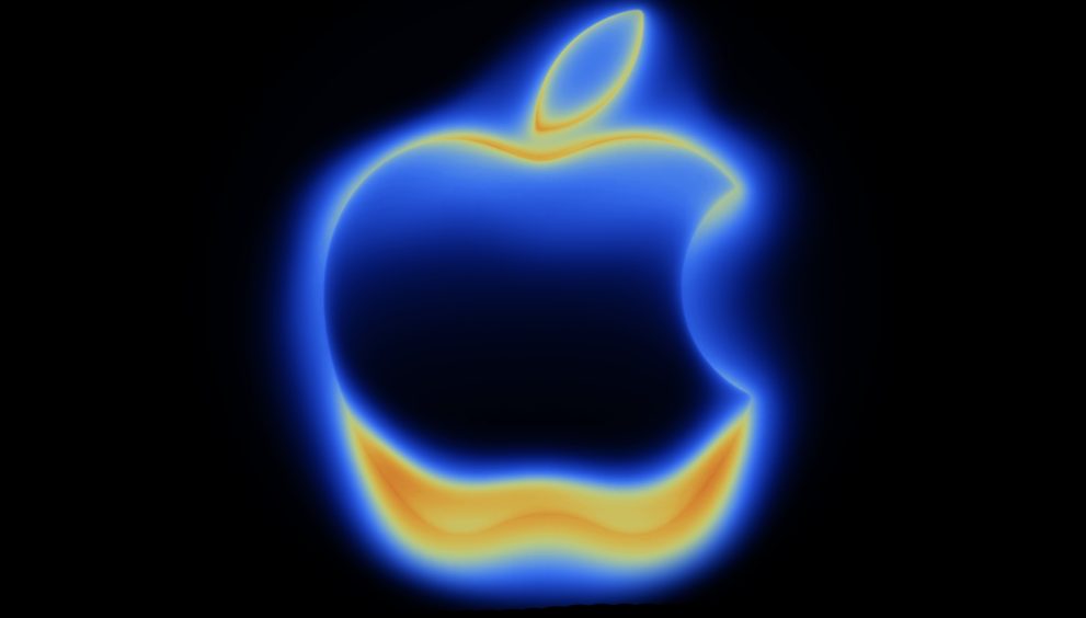 شاید آیفون‌های امسال دارای والپیپرهای تیره با جلوه نقشه حرارتی یا چرخش آبی و نارنجی باشند. یا چیزی تعاملی مانند تصویر در Apple.com. آن را امتحان کنید – انگشت، ماوس یا Apple Pencil خود را روی لوگوی اپل حرکت دهید تا رنگ‌ها تغییر کرده و با حرکات شما ترکیب شوند.